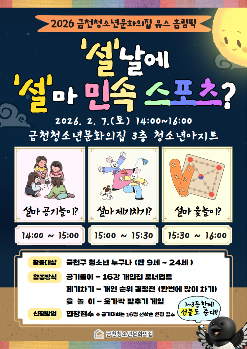 2026 금천청소년문화의집 유스 홈림픽 < ‘설’날에 ‘설’마 민속 스포츠?> 참가자 모집!